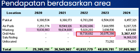 Hal ini disebabkan pembayaran dari jasa pembangunan proyek pada tahun 2023-2022. Pada tahun 2024, pendapatannya berkurang karena tidak adanya faktor tersebut. Kemungkinan besar pendapatan akan meningkat kembali pada tahun 2025. Jadi jelas ya penurunan bukan disebabkan oleh kurangnya penggunaan listrik.