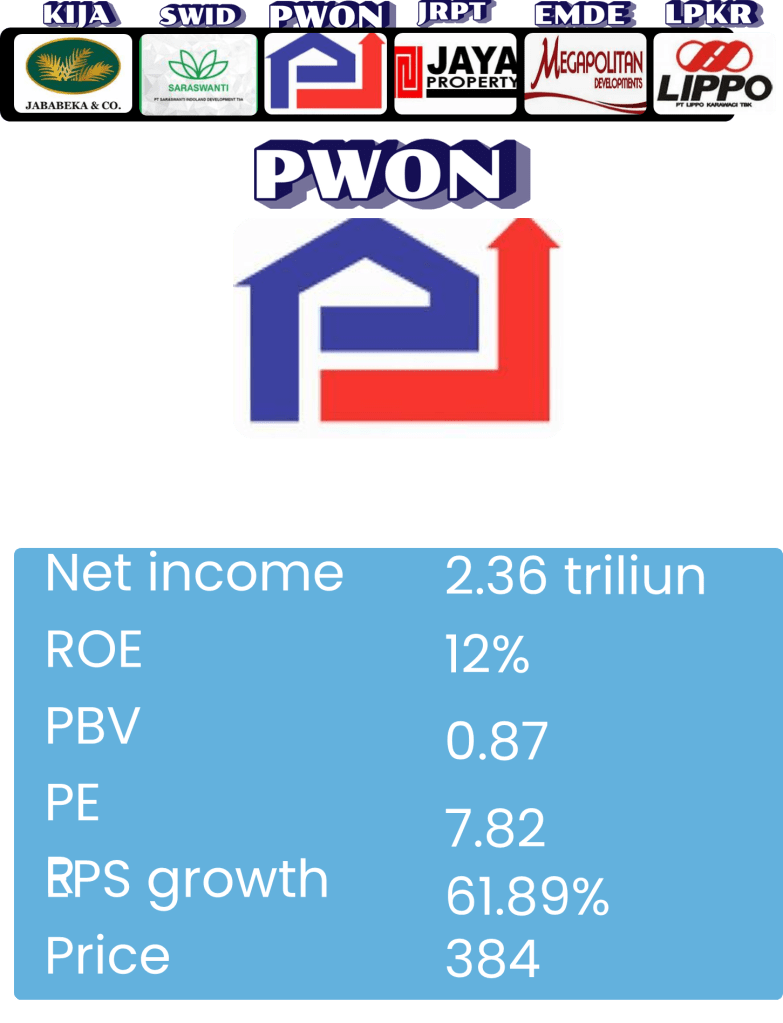 Berdasarkan niai bersih aset PWON pada semester 1 2025, maka harga wajar PWON yaitu sebesar Rp 610 per lembar saham.