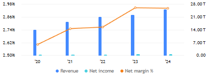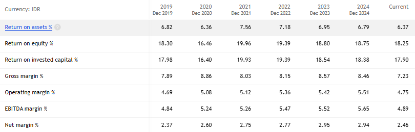 Return on invested capital konsisten sekitar 17% selama beberapa tahun terakhir, menunjukkan perusahaan mampu memanfaatkan peluang bisnis secara stabil. Namun, margin keuntungan kurang signifikan, sehingga strategi perlu dievaluasi.